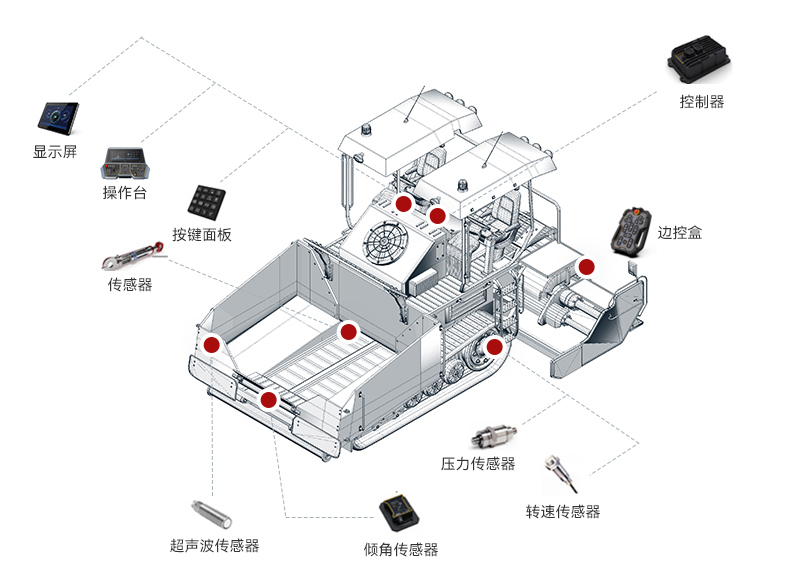 3003.com新葡的京智能摊铺机解决方案整合了感知技术、自动控制系统和数据分析算法,实现了摊铺机高度智能化操作。通过实时获取路面信息和实时调整施工参数,使摊铺机操作更加精准、高效和可靠。